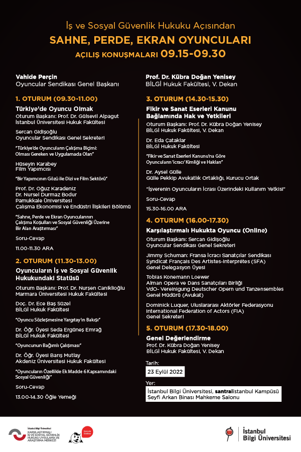 Advocate Dr. Aysel Gülle, la co-fondatrice du cabinet d’avocats, présentera son avis titré “La pouvoir d’utilisation de l’employeur sur les droits connexes des acteurs” au 3eme session du symposium nommé DES ACTEURS DU SCÈNE, DU RIDEAU, DE L’ÉCRAN au regard du droit du travail et de la sécurié sociale, qui aura lieu en 23 Septembre 2023.